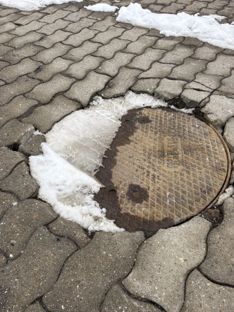 Grünhainichen_abgesenkter Kanaldeckel
